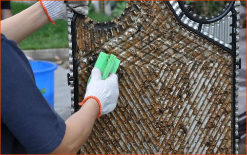 直徑大于1.5~3mm顆粒雜物容易阻塞板片通道,板式換熱器的流道間隙較小(2.5~6mm.使設(shè)備的壓力降急劇惡化,導(dǎo)致設(shè)備因堵塞而換熱能力大幅降低,嚴(yán)重的造成裝置連續(xù)生產(chǎn)中斷。所以根據(jù)需要可在介質(zhì)的進(jìn)口處設(shè)置粗過濾器或反沖洗裝置能有效的防止板式換熱器的堵塞。